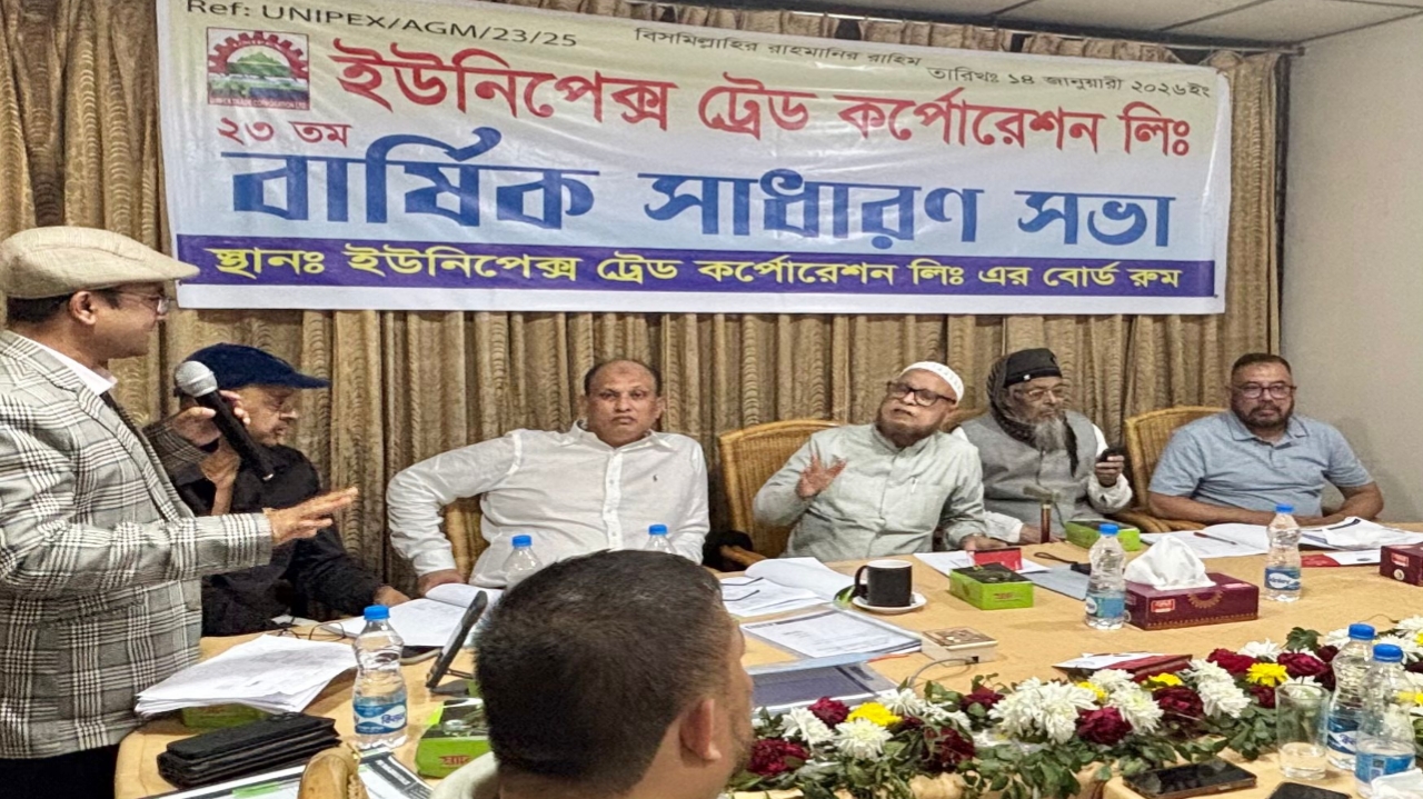 ইউনিপেক্স ট্রেড কর্পোরেশন লিমিটেডের ২৩তম বার্ষিক সাধারণ সভা বুধবার (১৪ জানুয়ারি) আল-হামরা ইন্টারন্যাশনাল লিমিটেডের বোর্ডরুমে অনুষ্ঠিত হয়েছে।