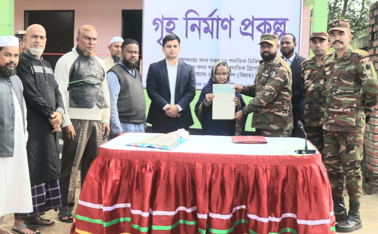 নতুন ঘরের চাবি হস্তান্তর করেছে বাংলাদেশ সেনাবাহিনী।