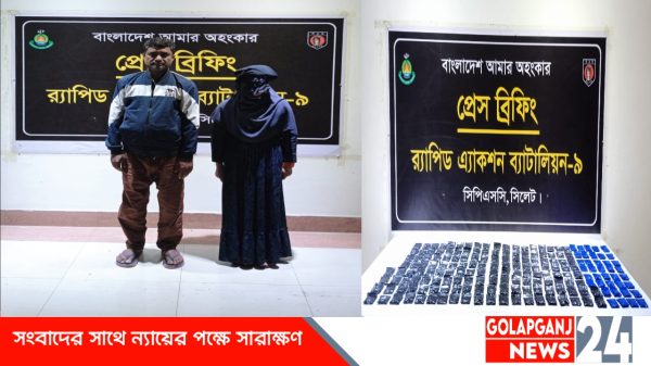 সিলেটের গোলাপগঞ্জে ৩৭৫৫০ পিস ইয়াবাসহ দুজনকে গ্রেপ্তার করেছে র্যাব-৯। সিলেট জেলার গোলাপগঞ্জ থানা এলাকা থেকে ২ মাদক ব্যবসায়ীকে গ্রেপ্তার করেছে র্যাপিড এ্যাকশন ব্যাটালিয়ন-৯ (র্যাব-৯)। বৃহস্পতিবার সাড়ে ৩টার দিকে গোলাপগঞ্জ উপজেলা