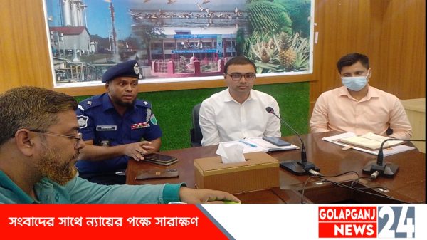 গোলাপগঞ্জে কর্মরত চার সাংবাদিকের নামে মিথ্যা অভিযোগে মামলা দায়েরের প্রতিবাদ ও নিন্দা জানিয়েছেন গোলাপগঞ্জে কর্মরত সাংবাদিকবৃন্দ। রোববার সন্ধ্যায় গোলাপগঞ্জ প্রেসক্লাবের অস্থায়ী কর্য্যালয়ে এক সভায় জনৈক দুই ব্যাক্তি কর্তৃক গোলাপগঞ্জের চার