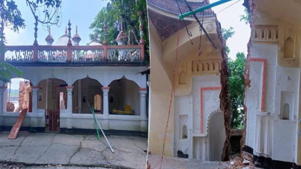 সিলেটের গোলাপগঞ্জ উপজেলার বাঘা ইউনিয়নে রুস্তমপুর গ্রামের ঐতিহ্যবাহী পুরাতন জামে মসজিদ সুরমা নদীর ভয়াবহ ভাঙনে এখন নদীগর্ভে। গত সোমবার (১৬ সেপ্টেম্বর) যুহরের নামাজের সময় হঠাৎ বড় গম্বুজ সহ মসজিদে বেশির